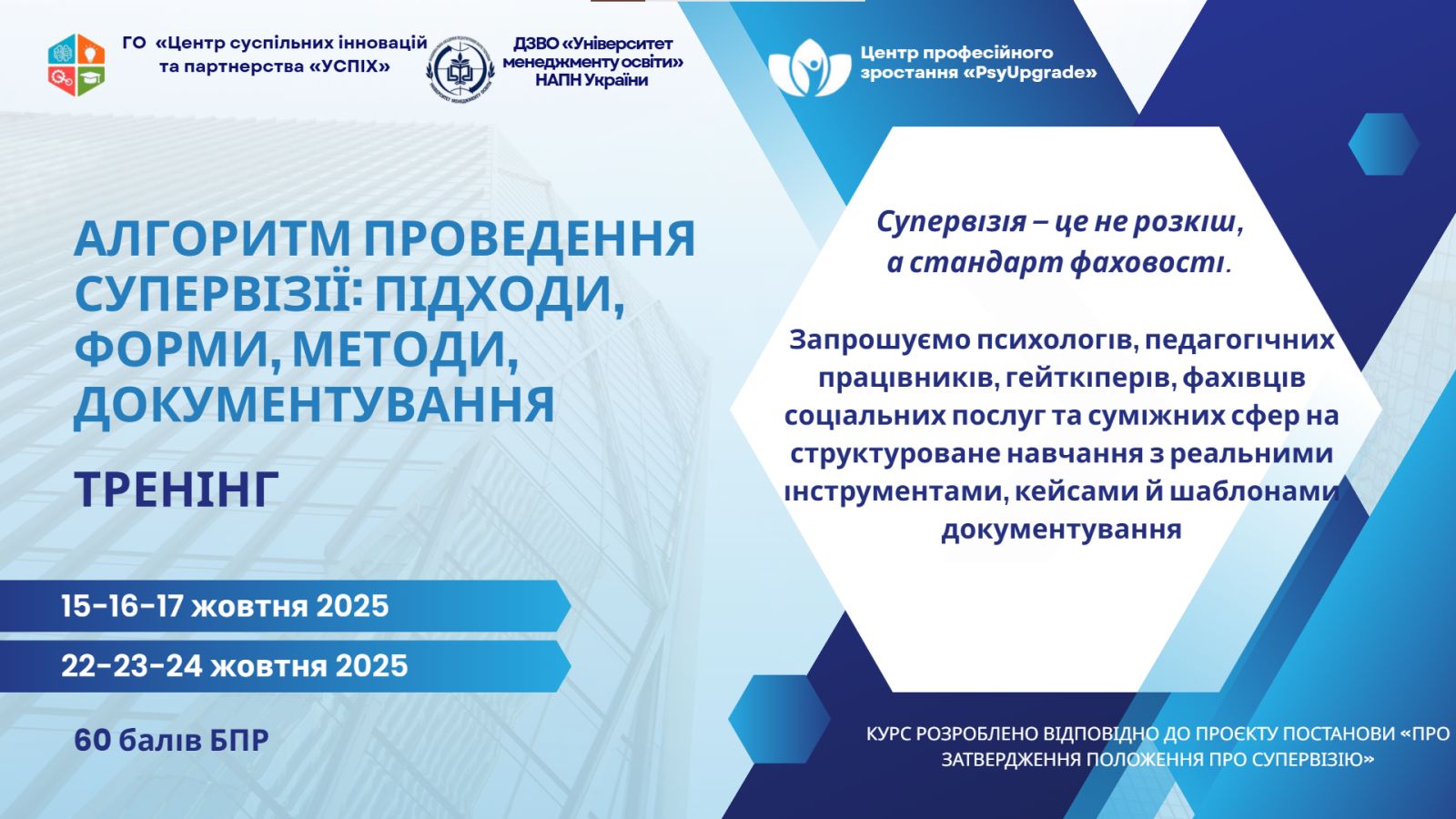 👉 ДЕТАЛЬНІШЕ — і дізнайтеся, як проводити супервізію професійно, етично та з користю для фахівців і команд!