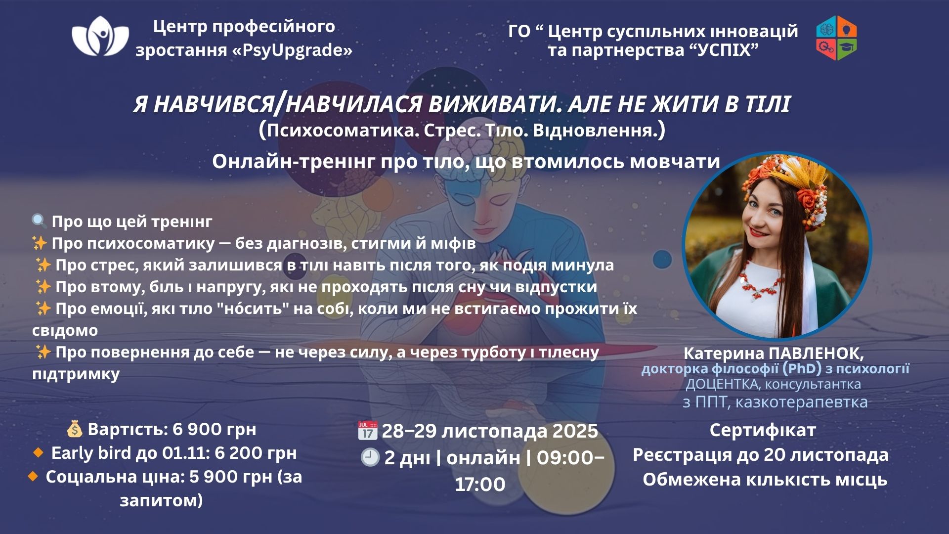 💰 Вартість: 6 300 грн | Реєстрація до: 10 листопада