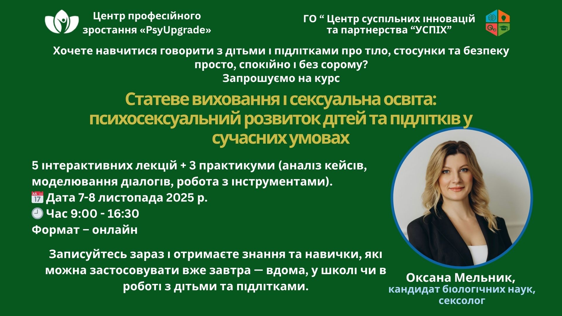 👩🏫 Тренерка: Оксана Мельник — сексолог, к.б.н.